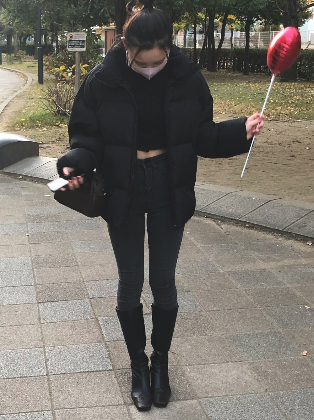 昨日のコーデ✌︎ ハートの風船は気にしないでください😅 クロップド丈kawaii~~❤︎