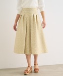 ふんわりとしたパフスリーブのニットは、ウールシルクの素材で滑らかで着心地の良い1枚。 今の季節はもちろん、春にピッタリのパステルカラーが目を惹きます。 着丈もコンパクトなので、スカートとの相性抜群です。 合わせたスカートも凹凸感ある小花柄のジャカードスカート。 ウエストのタックがキレイなのでふんわり広がるシルエットです。 程良い肉厚な生地なので、今の季節から初夏まで長い季節活躍します。 イエロー×イエローで一気に気分を春にワープさせ、コロンとしたフォルムのバッグは淡いライトブルーをチョイス。 春めくカラーの合わせがとても可愛いフェミニンコーディネートです。