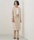 ジャージー素材のセットアップは、伸縮性がありながら型崩れしにくく、きちんと感を出せるANAYIのベーシックなデザイン。 ステッチとポケットのくすみ釦が程良いアクセントになっています。 スカートも後ろが一部ゴムになっているので、履き心地も良く、長さはあっても後ろスリットがあることで足捌きもしやすいです。 ジャケット同様、ウールの柔らかさと着心地の良さを感じながら着用頂けます。 ブラウスは、ジャケットのカッチリとした印象を和らげるような肩から袖にかけて落ち感のあるラッフルが特徴のブラウスをイン。 取り外し可能なボウタイとバイカラーがアクセントになるので袖のラッフルが見えなくてもしっかりとした存在感とフェミニンさを演出してくれます。