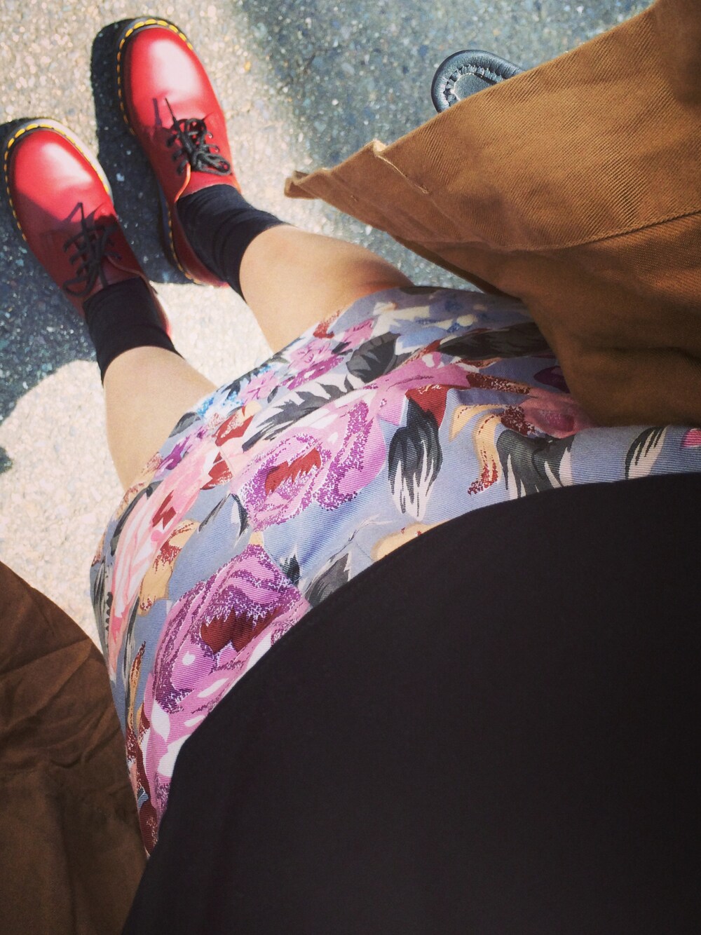 お気に入りの古着のスカートとシャツとコートとマーチンと。 生足!
