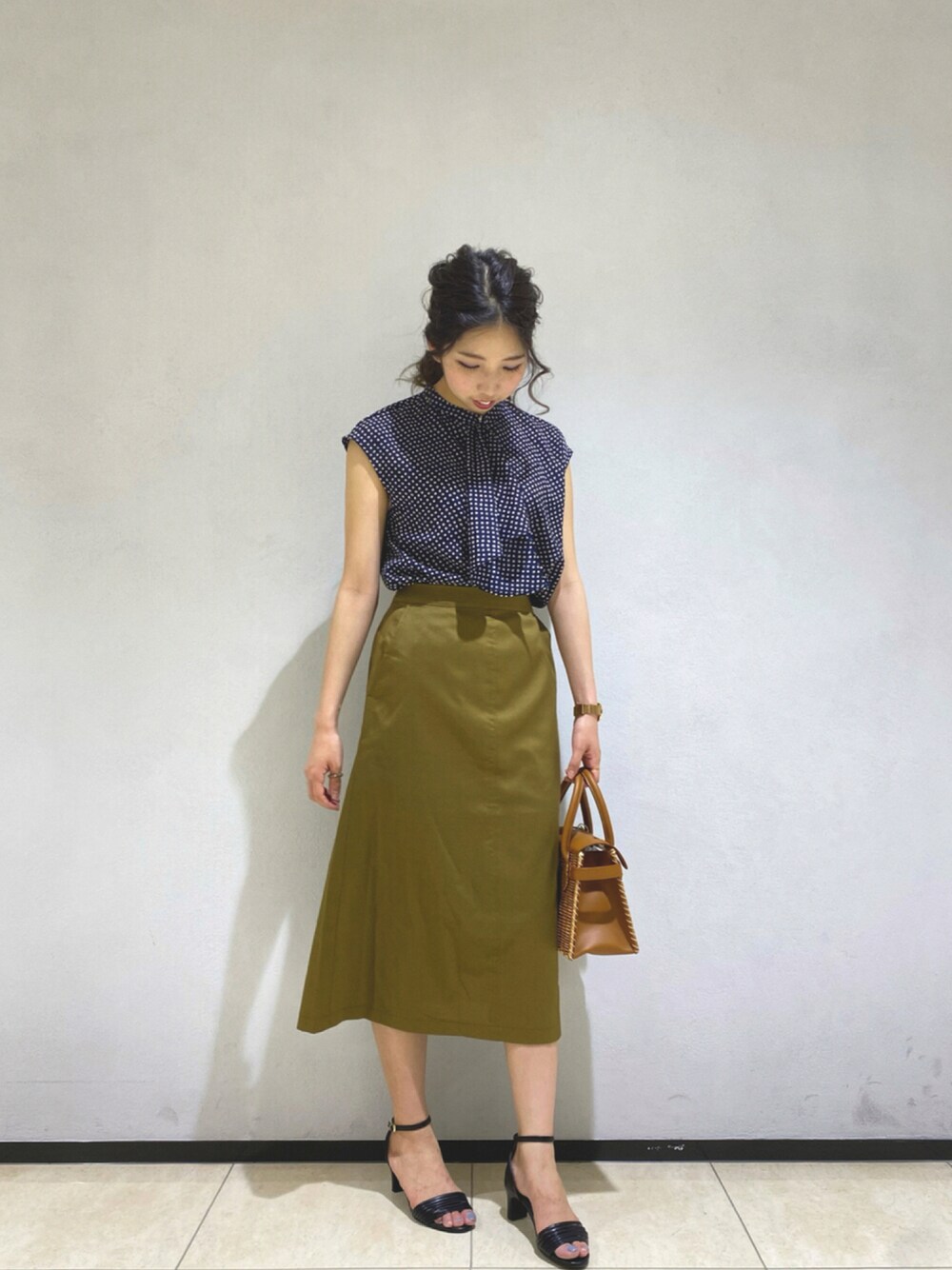 Ohmoriのシャツ/ブラウス「ランダム幾何柄ボウタイブラウス」を使ったコーディネート