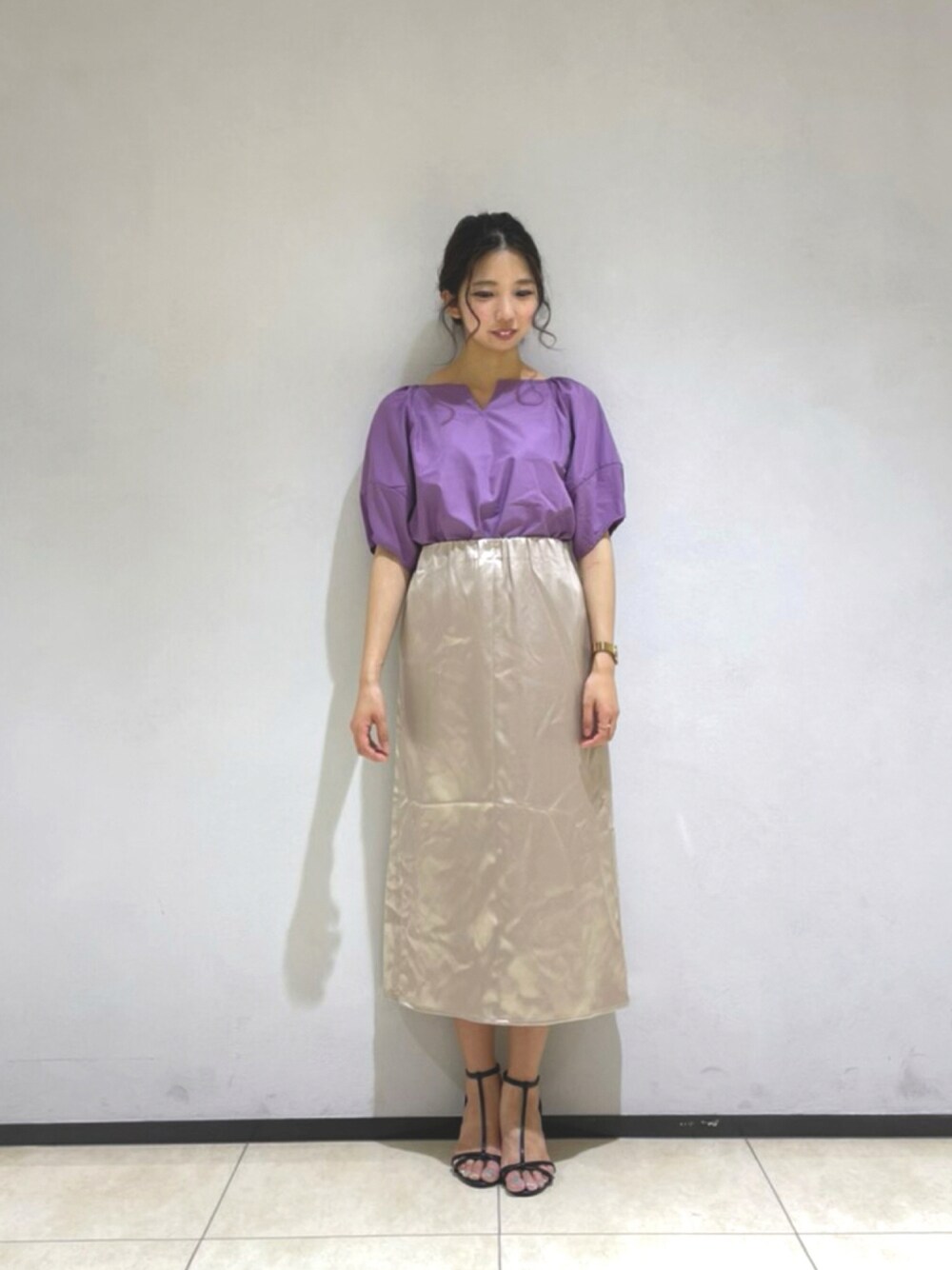 Ohmoriのシャツ/ブラウス「ボリュームスリーブキーネックブラウス」を使ったコーディネート