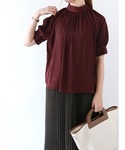 ご覧いただきありがとうございます❤︎ マットなサテンの風合いで上品コーデが完成するブラウス。 後ろの並んだボタンも可愛らしいです☺️ ふんわりとしたギャザーフォルムで女性らしい印象になります。