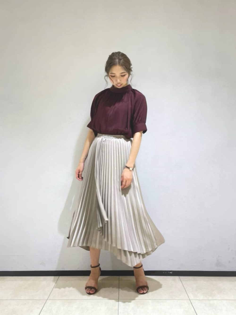 Ohmoriのシャツ/ブラウス「サテンスタンドカラーブラウス」を使ったコーディネート