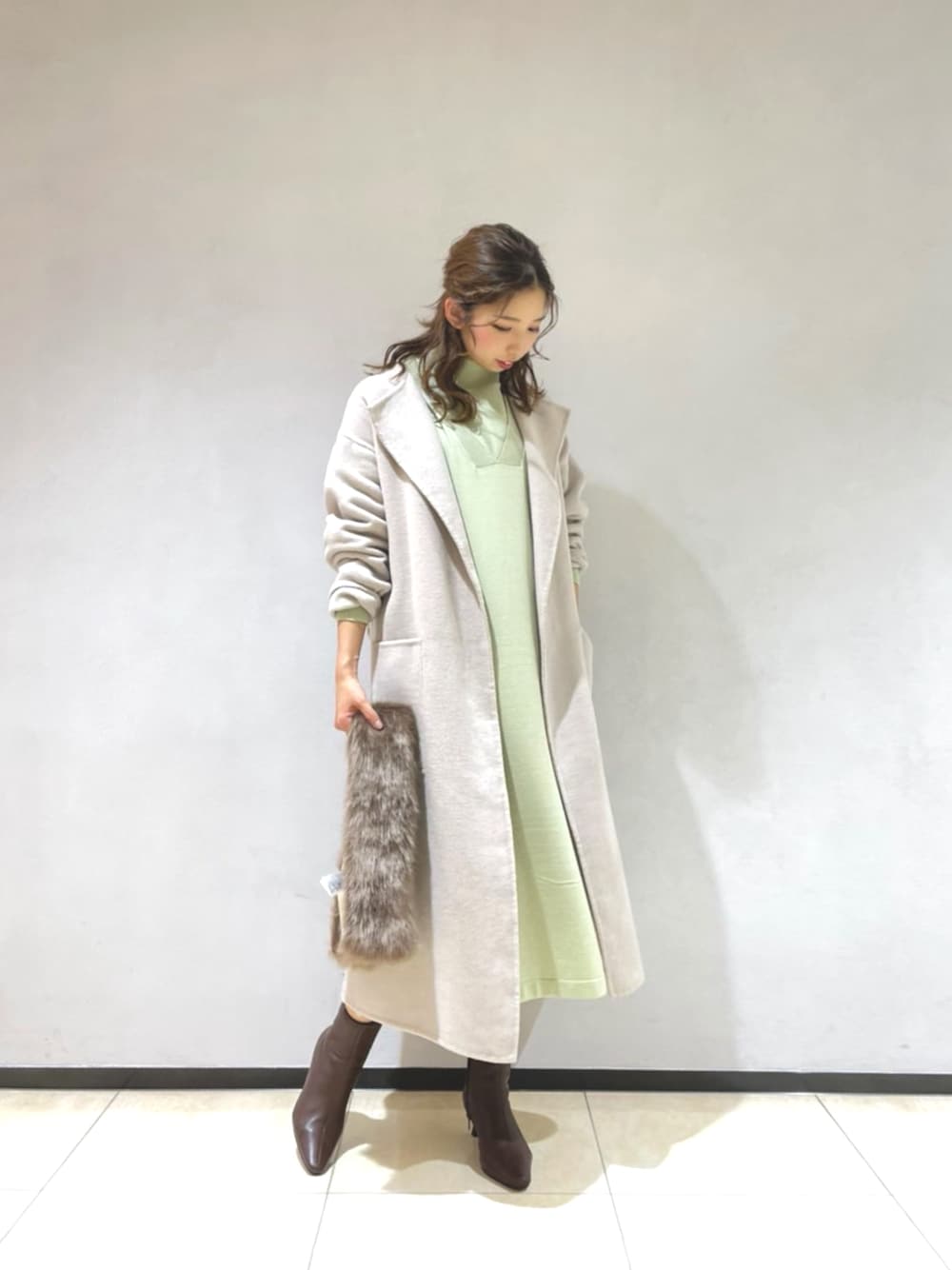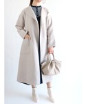Ohmoriのノーカラーコート「ノーカラーリバーコート」を使ったコーディネート