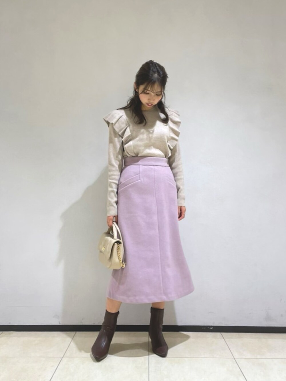 Ohmoriのニット/セーター「ショルダーフリルニット」を使ったコーディネート