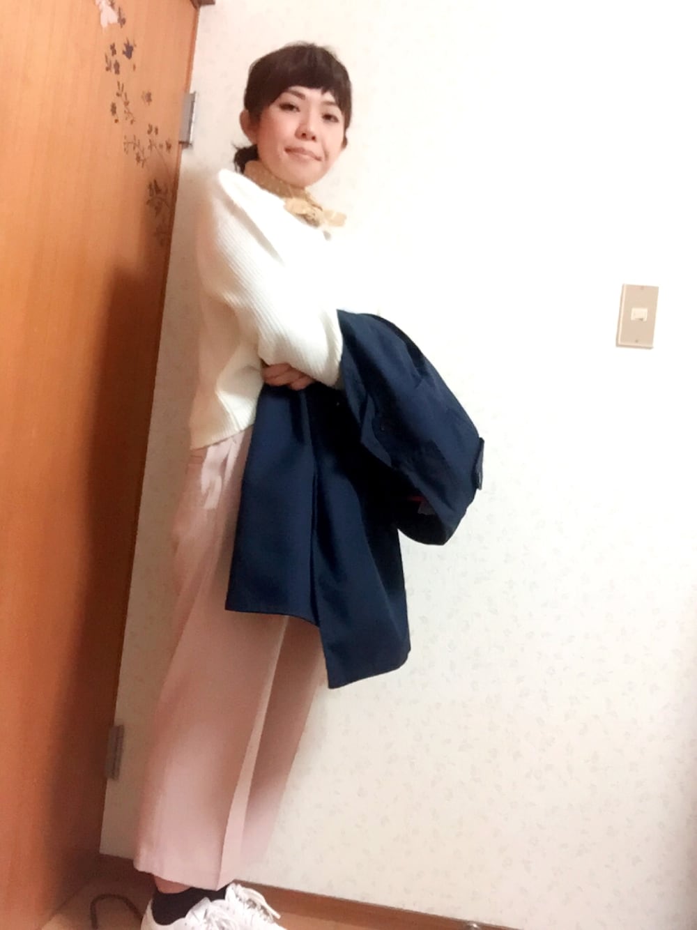友達と飲みにいった日🍷 スカーフのあったかさに驚く👏 スカーフとかいくつまで巻いていーのかな🙄 メゾンキツネ❌リーボックのスニーカーは 真っ白で晴れの日にしか履けません🙈