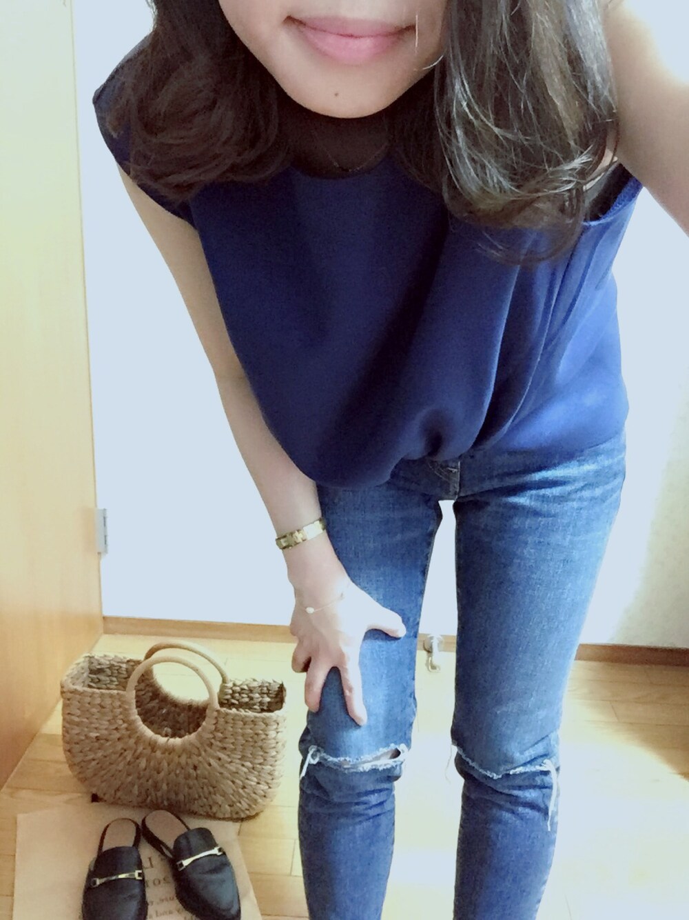 美容院に行った日💇 このつやつやが一生続けばいいのに笑✨ デニムはやっと買えたトゥディフルのもの👖 初日だからちょっときついです。 はやくなじめー♡➰😙