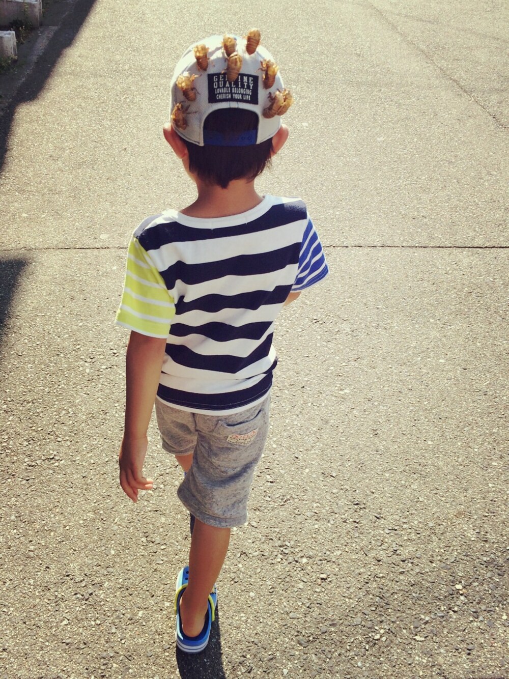 パンツ.キャップ★JUNKSTORE サンダル★ブランド不明 蝉とり行ったけど虫嫌いの息子は泣き叫んで抜け殻だけGETしました。笑