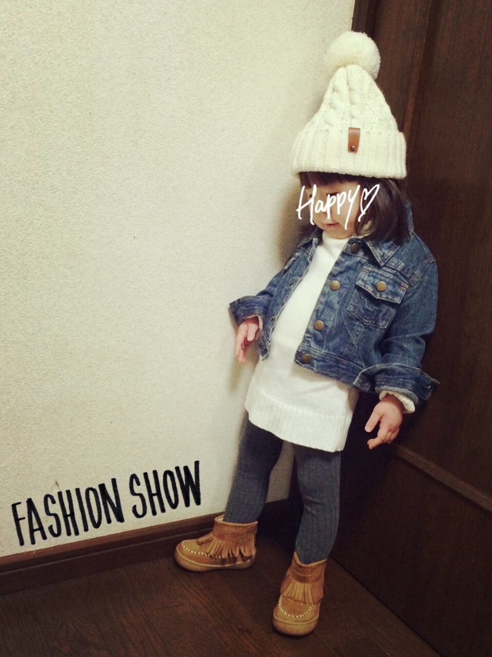 ニット★西松屋 デニムジャケット★used 帽子★Right-on 靴★トイザらス オーバーサイズのニットで ワンピースに(^ ^)