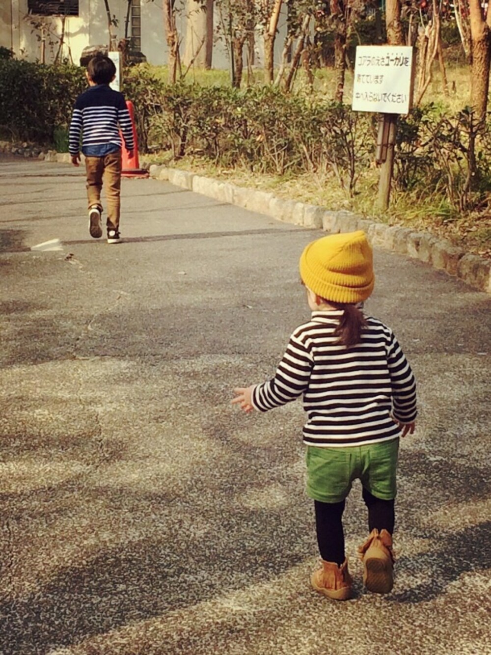 トップス★西松屋 パンツ★MARKEY'S タイツ★西松屋 靴★トイザらス かなりこ無沙汰。 先々週やったかな? 動物園行ったときの。 兄を追いかける。
