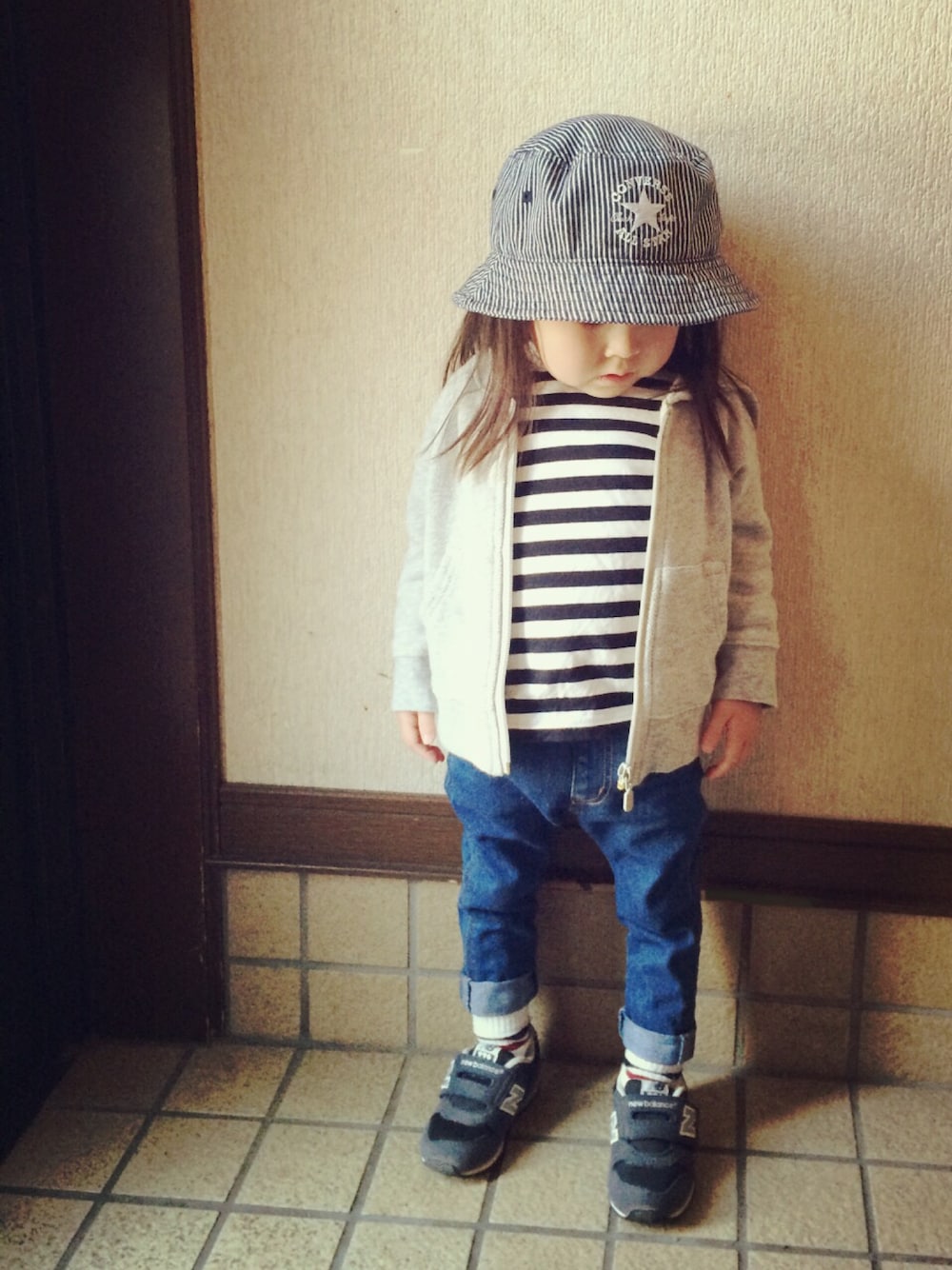 トップス★無印良品 パーカー★SunnyLandscape パンツ★JUNKSTORE 靴下★無印良品 帽子★しまむら