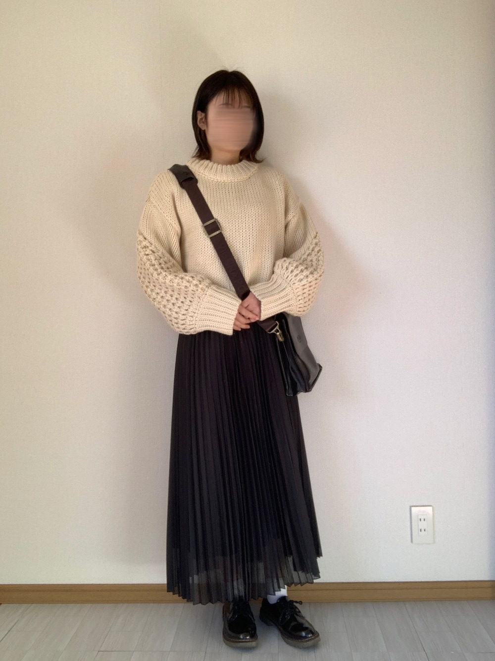 あかやのニット/セーター「バックベルトショート丈ボリューム袖ニット」を使ったコーディネート