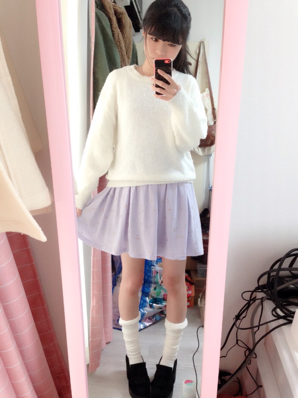 最近めちゃくちゃ寒い(>_<) ので今日はもこもこしてみました! 大好きな白×紫コーデ🎶