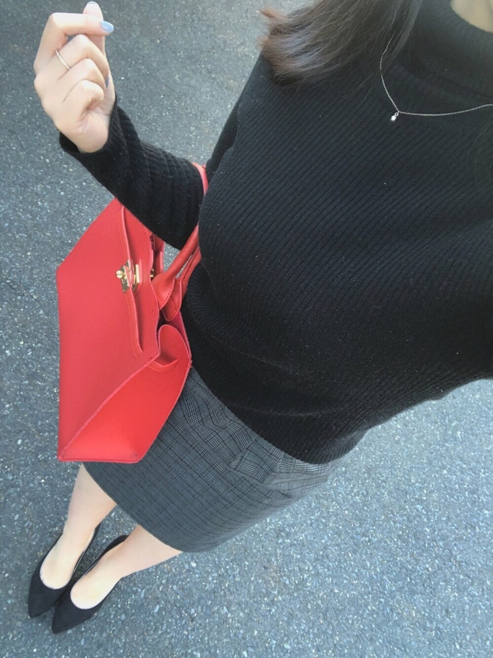 グレンチェックのワイドがほしくて、、! けっきょく買ったのはタイトスカート😇 、、、あれ? ひざ下のタイトが欲しかっただけ。← こんな格好してるから 大学生に見てもらえへんのでしょう🙃💭