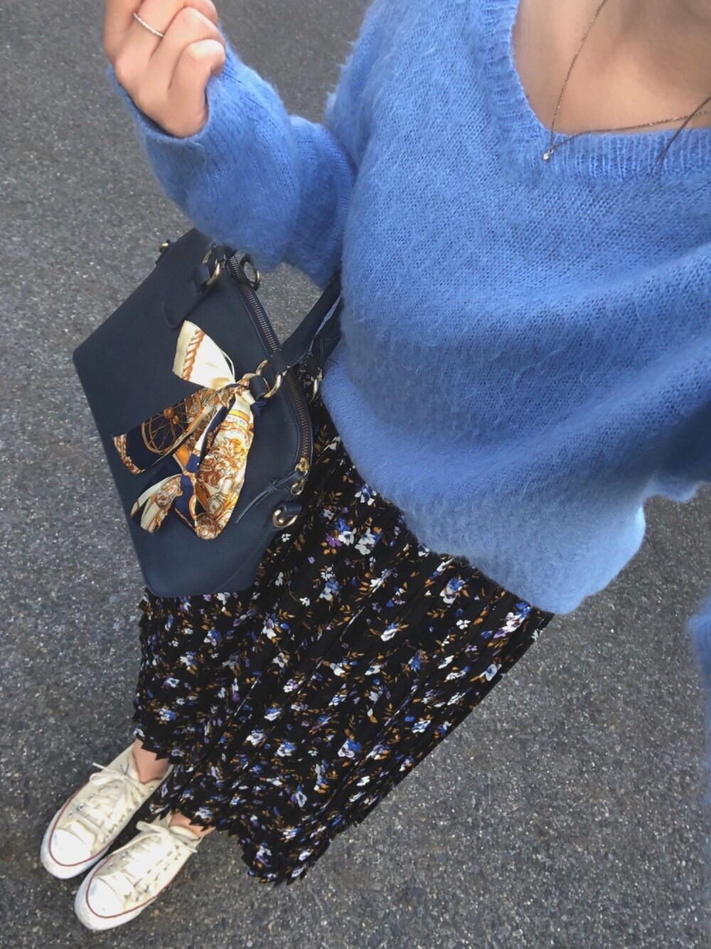 水色ニットは今年も使えるかな👶🏻💙 最近すごく写真のテイスト 変えたくなってきた🤔💭 でもいい背景見つからんねんな〜〜 おしゃれな人は家の階段とかでも おしゃれに撮らはるからすごい👀✨
