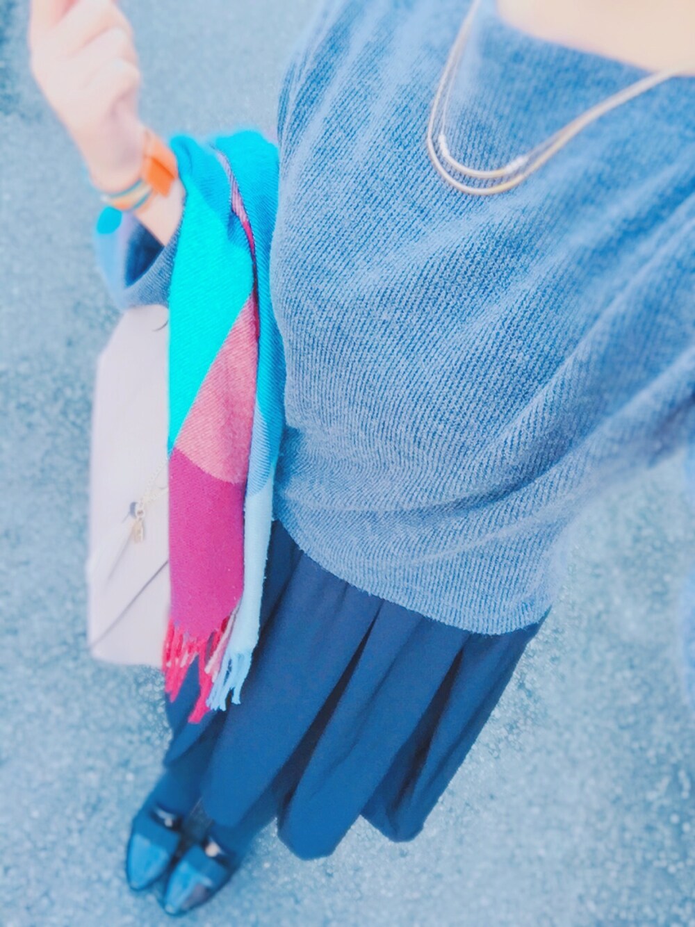 マフラーゆるっとまきたいなぁ🐶 袖がひろがってるおちついた色のニット 探してたら出会って即買ったやつ💗