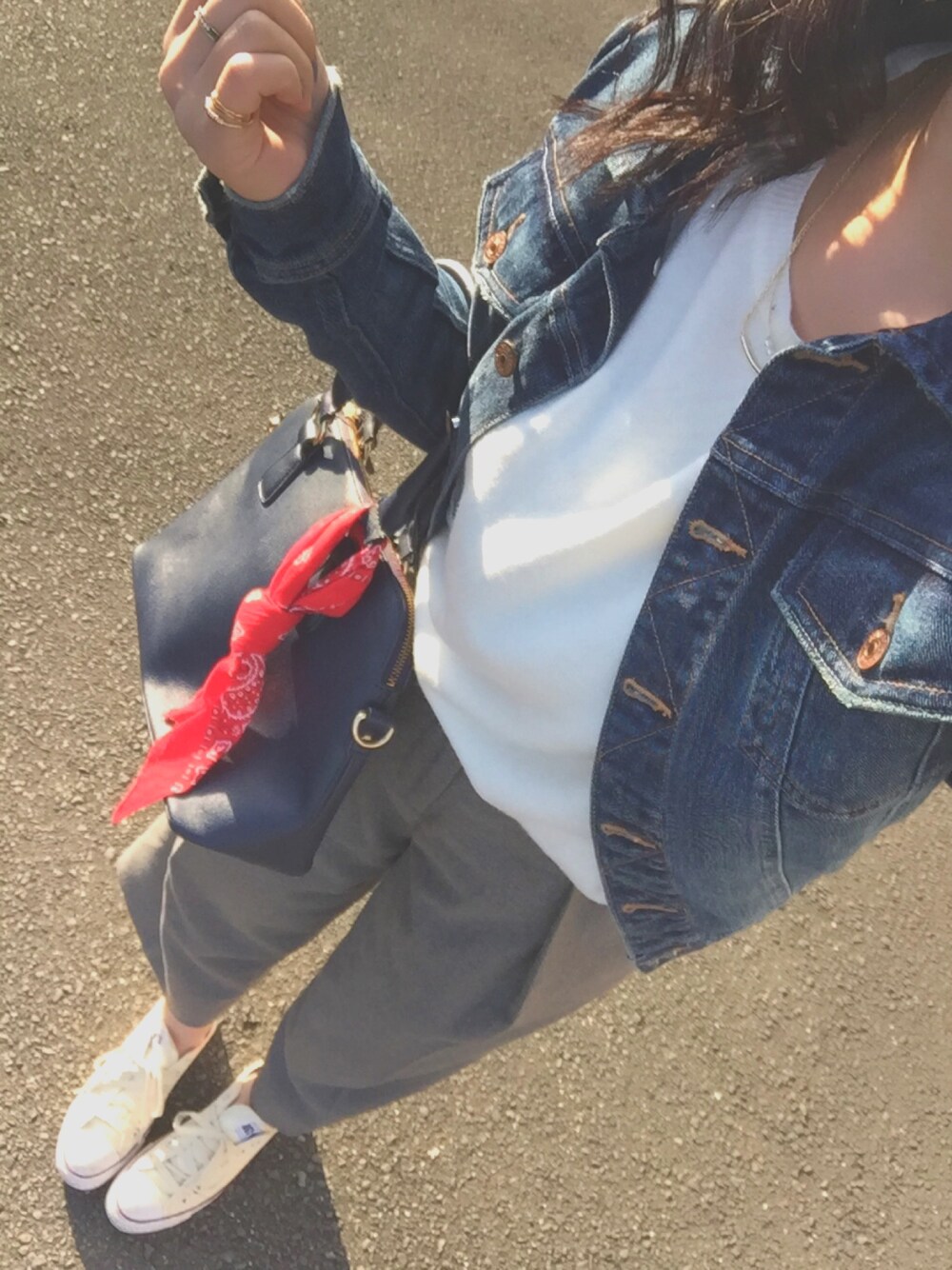 初めて頭にスカーフまいた👯✨ うつってないけど 笑 グレーのパンツいいのに出会えた 即お気に入り👍🏻💗 いいねsaveありがとうございます!!! めっっちゃ喜んでます😊❤️