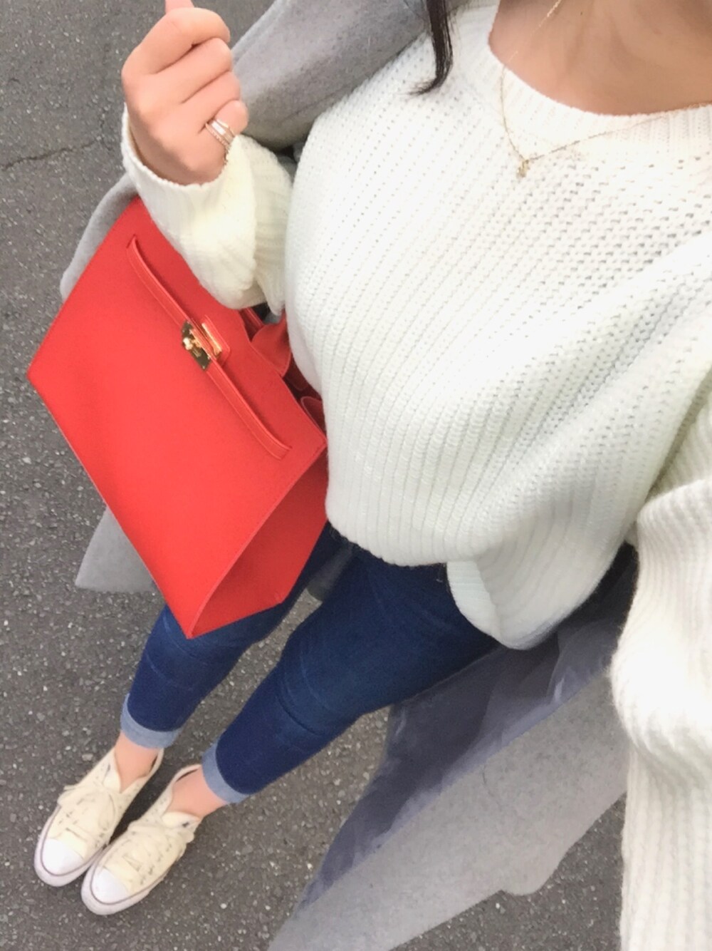 お久しぶりの投稿💌 ungridのニットを手に入れて はっぴーはっぴー👼🎈 サイズ感とかゆるさが ungrid様様🙏🏻✨ 冬でも小物くらいは明るくいこーってことで、 赤のハンドバッグGET👜❤️