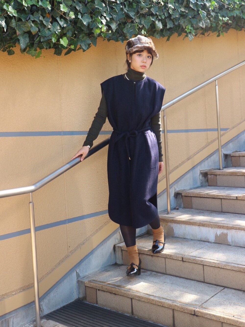 パリっ子風コーディネート🎀 大好きなアダムエロペのワンピースはパンツやスカートもレイヤードできてコーディネートは無限大!! 悩みに悩んで買ったカオリノモリのファーキャスケットはお気に入り💘
