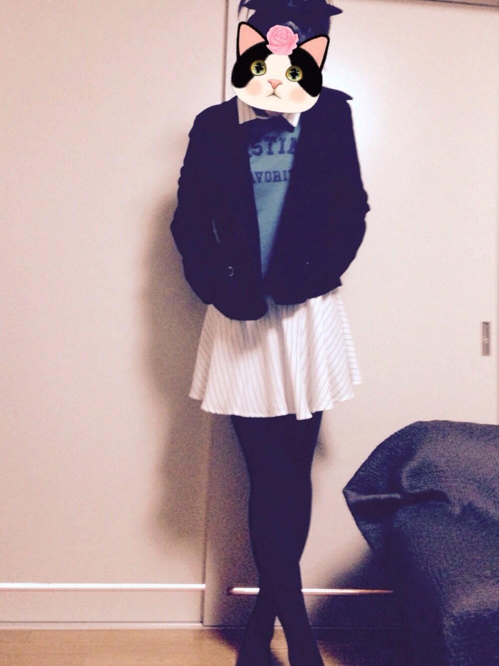 Honeys🐝で見つけたワンピース♡♡ コートは古着屋さんで見つけたショート丈の黒いコート♡1000円でした😜💕