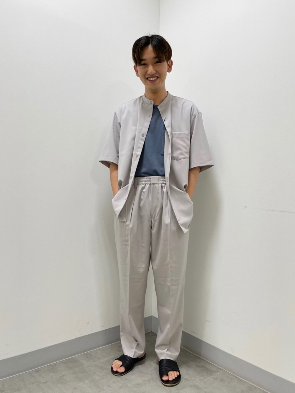 naoyaのシャツ/ブラウス「WASHABLEウールショートスリーブバンドカラーシャツ」を使ったコーディネート