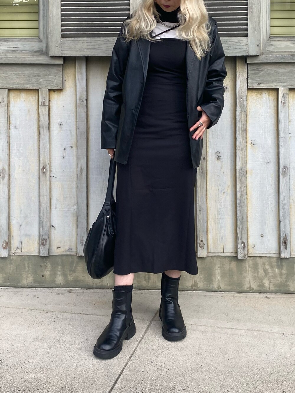 おはようございます🌞 閲覧ありがとうございます❤️ 完全にブラックコーデ✌🏻🖤 SHEINのキャミワンピは 体のラインがでてスタイルよく見える🥺