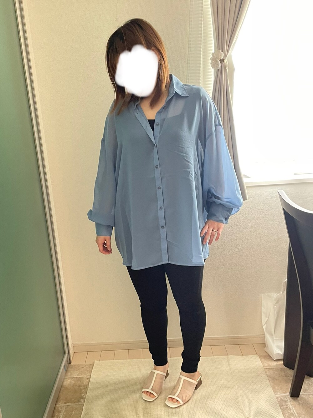 母がお揃いでプレゼントしてくれた ブルーのシアーシャツを使いました💙 しまむらの OFALO のものです。 シアーシャツって涼しげに見えるけど そんなに涼しくないので 暑くなるけど朝は肌寒いって時に いいな〜と実感しています✨ 日が出て暑くなったら襷掛けしても おしゃれに着こなせますよね🧸🤍