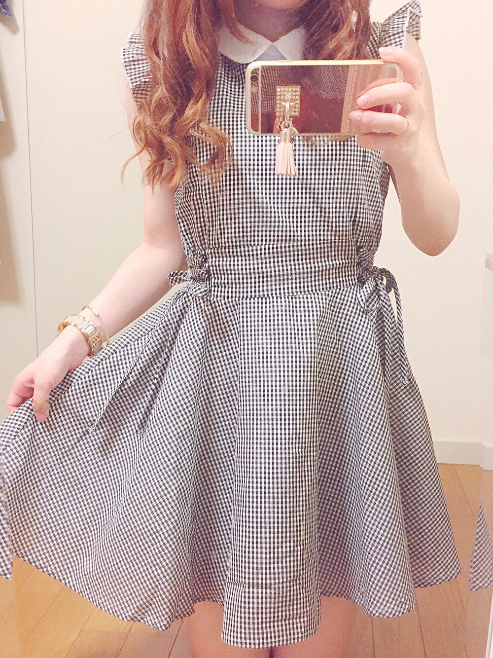 evelynのギンガムチェックのワンピース♡ サイドが編み上げりぼんになってて可愛い♡