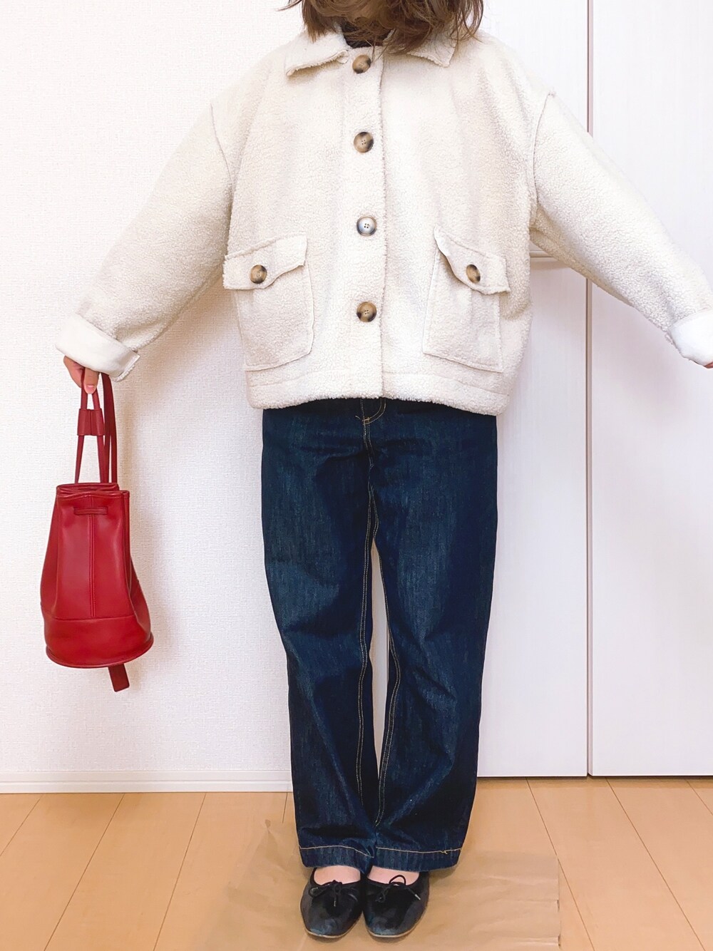 . . 前回のコーデのアウターを変えただけコーデ☃️ . もこもこボアブルゾンの形とボタンが かわいくてお気に入り〜〜٩(^‿^)۶ . .