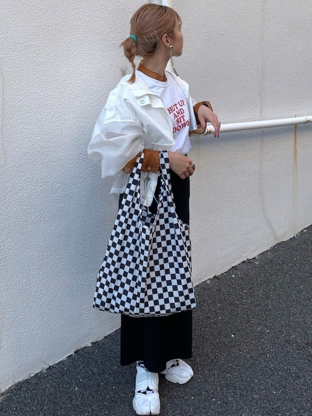 oohaのエコバッグ/サブバッグ「STANDARD BAGGU 279.チェッカーボードブラック」を使ったコーディネート