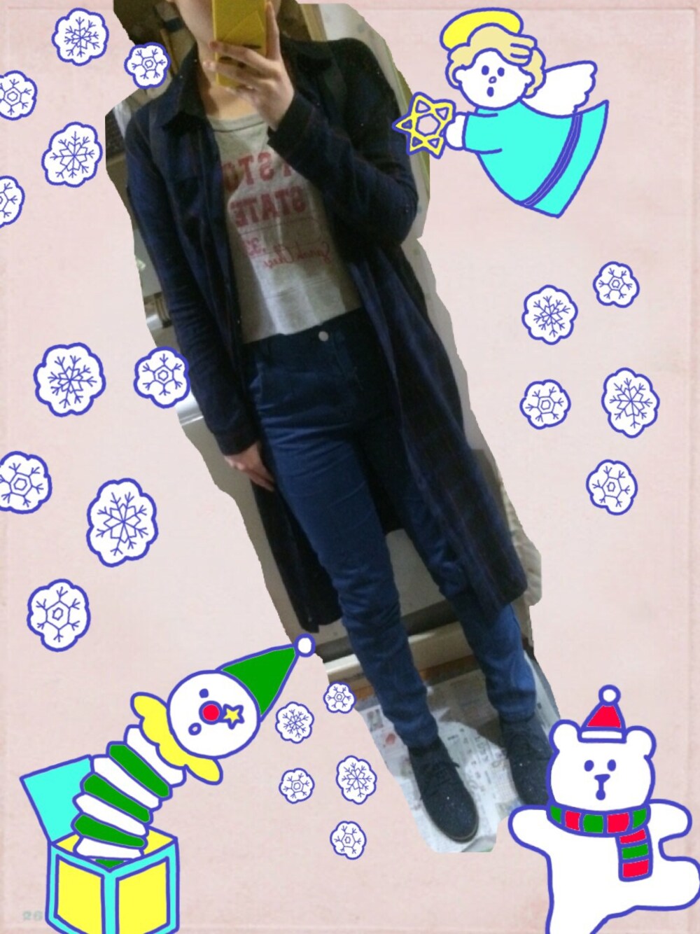 東京3日目(^O^) 札幌に帰るけ、なるべく暖かいコーデにした! でも東京は暑くて、 ロングシャツは腰に巻いてたwww shirt:MURUA tops:不明 bottom:Heather shoes:JELLY BEANS