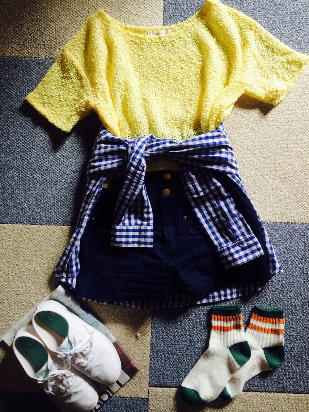 아야のデニムパンツ「ハイウエストショート」を使ったコーディネート