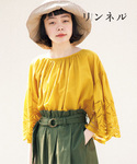 あおばのシャツ/ブラウス「【『リンネル』6月号掲載・Market】スカラップレーススリーブブラウス」を使ったコーディネート