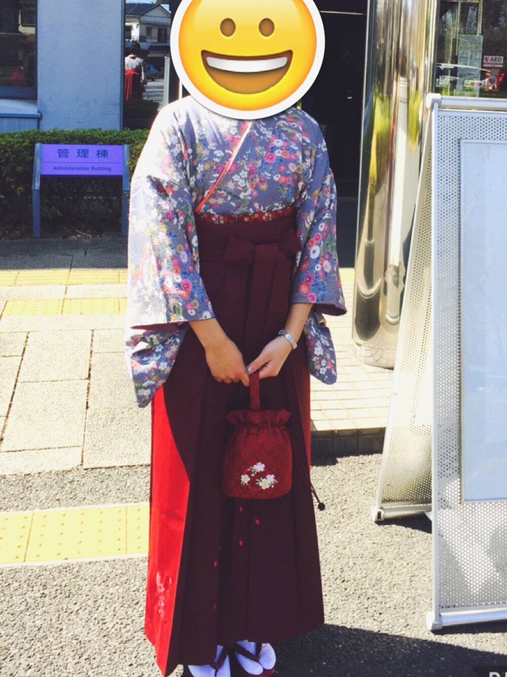 全く登録してなかったけどお気に入りすぎて。 母のグレーの着物とエンジのレンタル袴で卒業式!