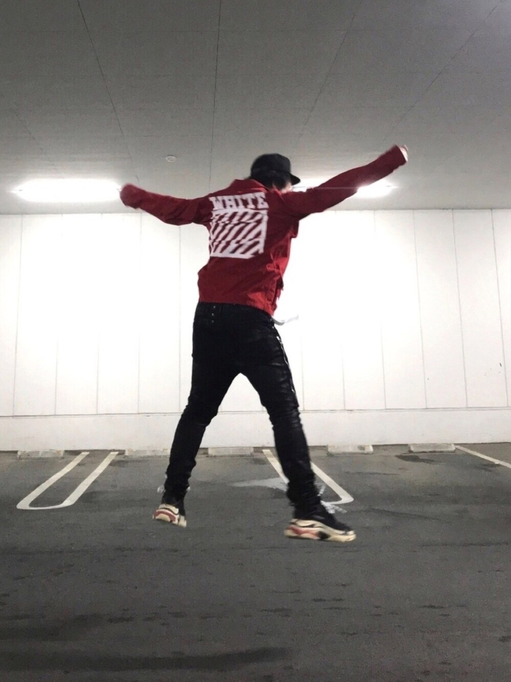 昨日の夜撮った写真です(๑`・ᴗ・´๑) 今日の主役は、BALENCIAGAのtrpleSです😁🎵 この靴は最近の靴にしては重い…そして何かデカイ😅 でも、デザインと色がカッコイイのでオッケー👌ですが🤗 この写真は、TripleSを手に入れた嬉しさと靴が重かったので、とりあえず思いっきりJUMPしてみたところです(笑)
