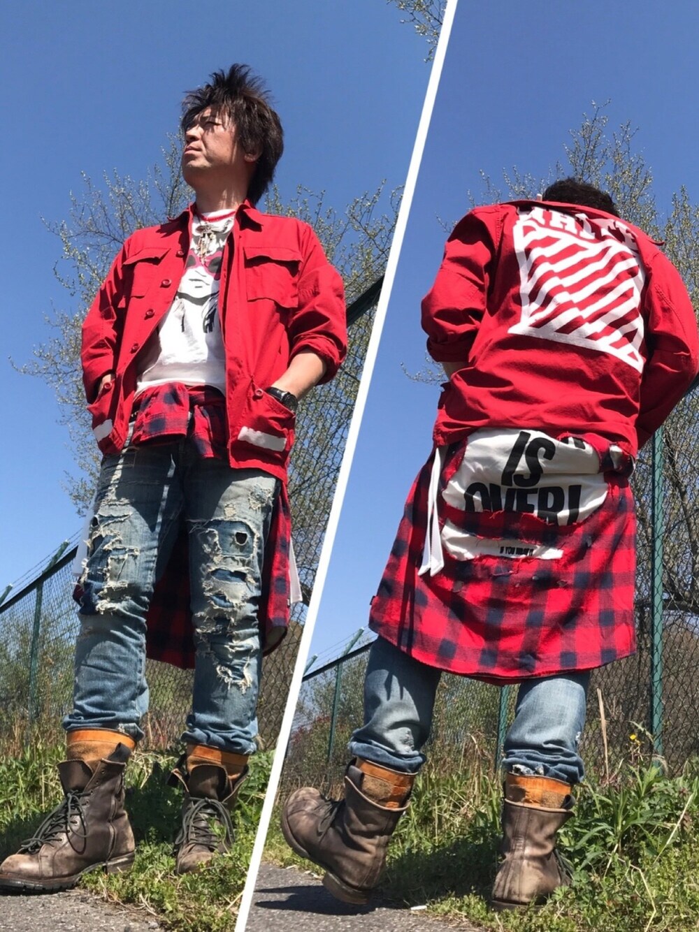 今日は、off-whiteのジャケットの赤をメインに♪( ´▽`) 何か上手く着こなせてるかわからない…大丈夫ですか⁉️(笑)
