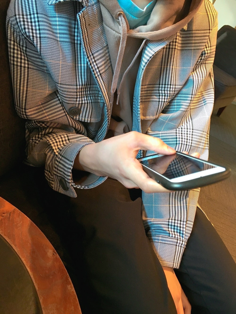今日は弟のコーデ * ジャケットはプレゼントしました 背が高くて細身で、腕が長いからいつもはLサイズだけど、このジャケットはMでも全然違和感なく着れました✨