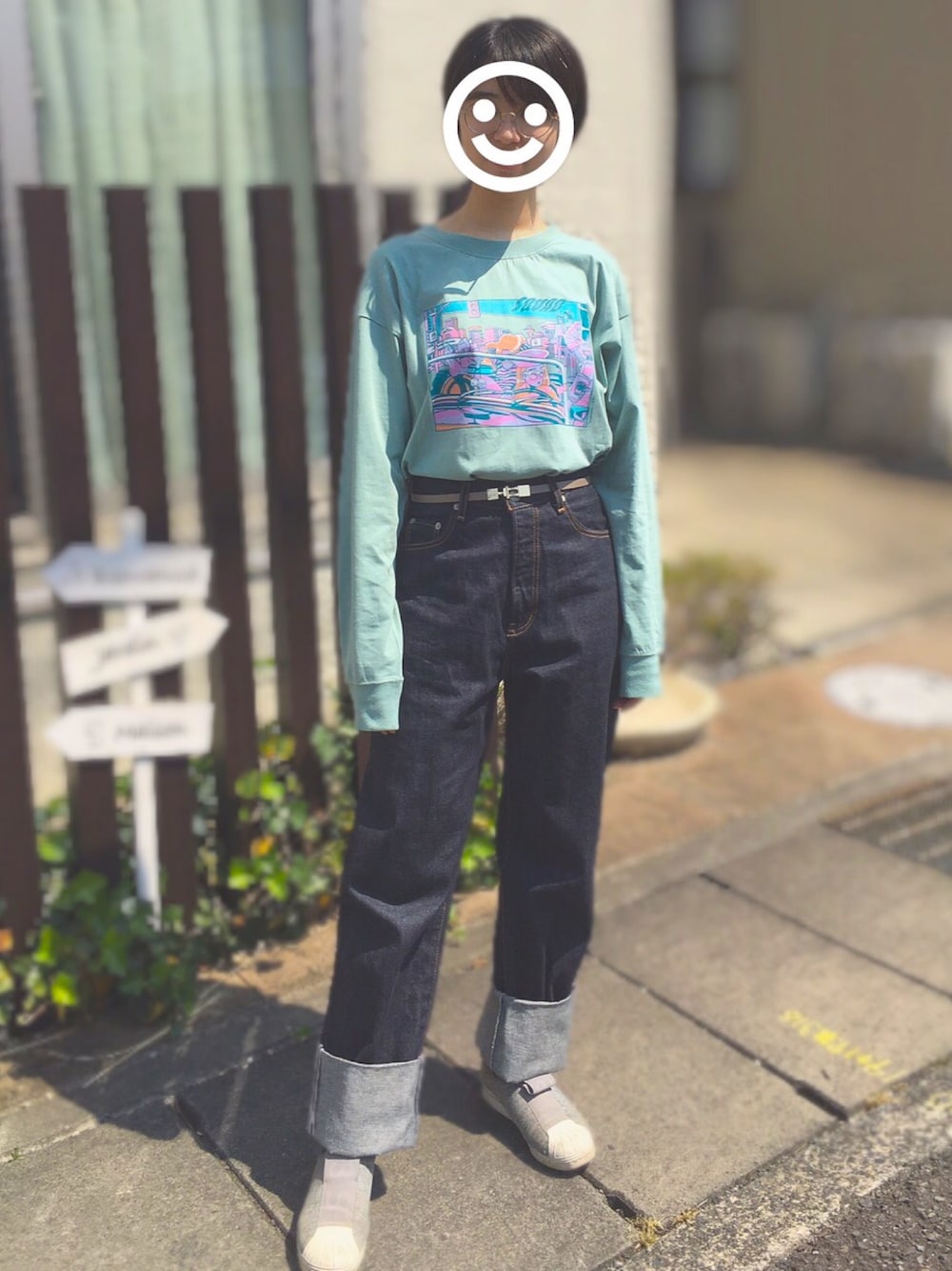 みなみ。のデニムパンツ「セルヴィッチワイドストレートデニム」を使ったコーディネート