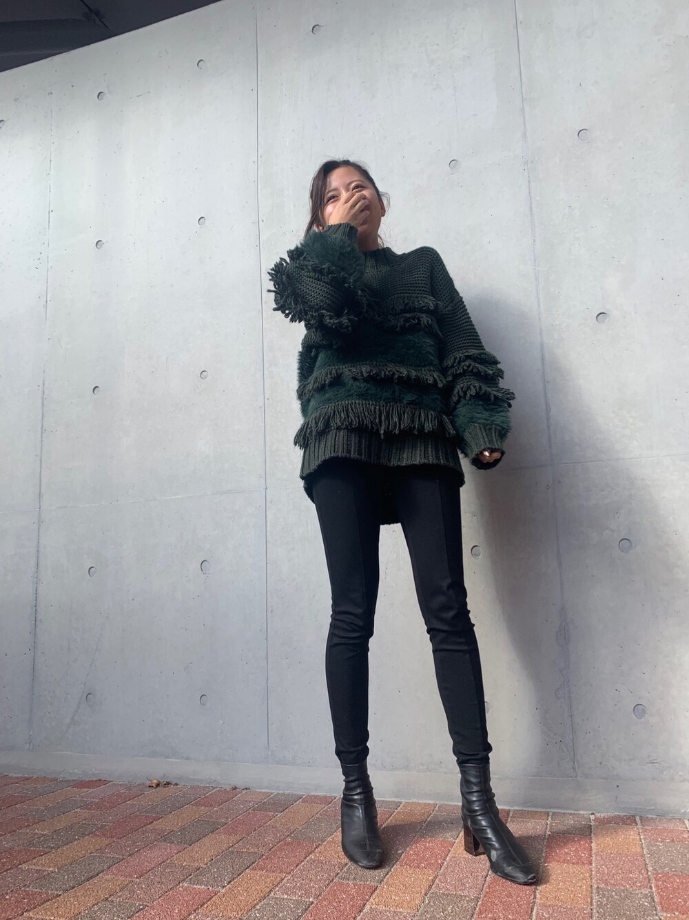 このEVRISのニット、めーっちゃあったかくて、後ろはお尻が隠れるから足も細く見えるしほんまにお気に入り🤤
