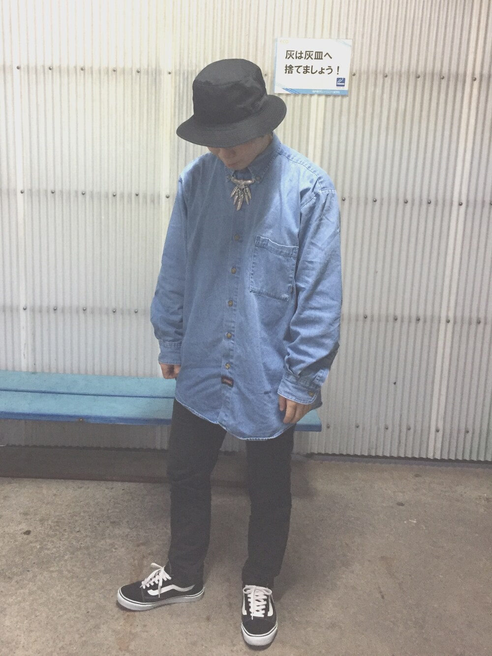 でかめのデニムシャツにサファリハット合わせてみちゃったよ