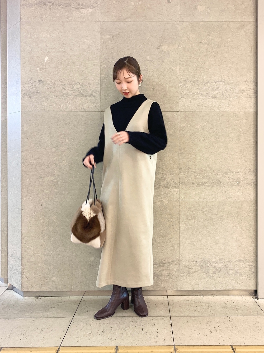 akane(SENSE OF PLACE 天神地下街)のワンピース「Vネックジャンパースカート」を使ったコーディネート