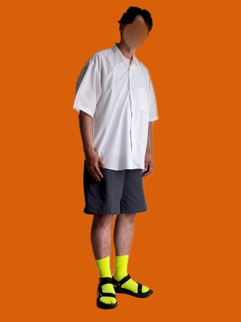 こんにちは😊 白シャツ、ショートパンツだと物足りないのでネオンカラーソックスを履いてみる!