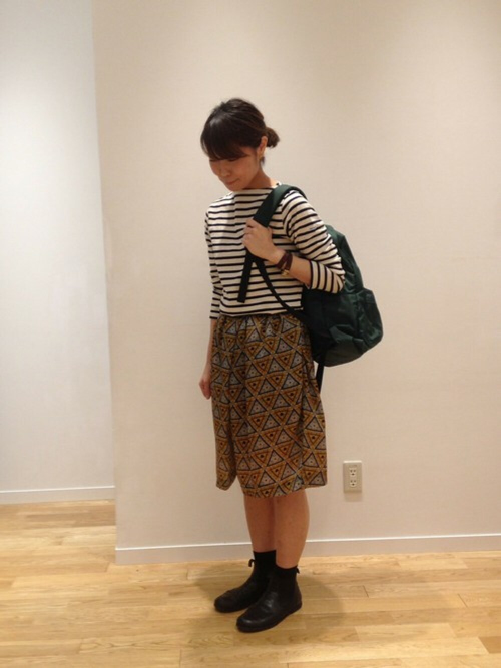 柄と柄を合わせたコーディネートです。 春なので色をたくさん入れて明るく!