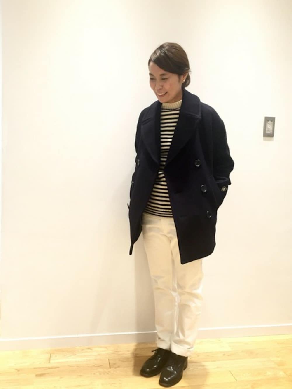 sanpeiのピーコート「<15秋冬>【ORCIVAL(オーシバル)】ジーロンラム メルトン ダブルハーフPコート」を使ったコーディネート