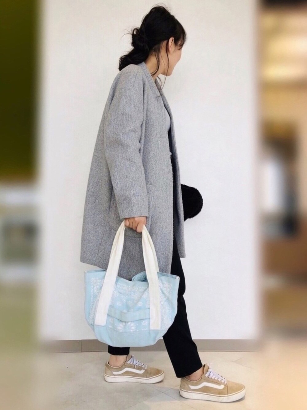 楽な服が一番! 寒いけど足首出したい!! トートの持ち手が白いのはすぐ汚れてしまうから要注意、、、