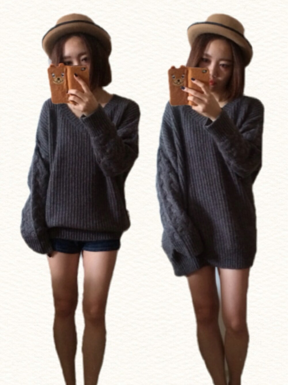 ざっくりオーバーニットはミニワンピ風に、 足だしてヘルシーに!