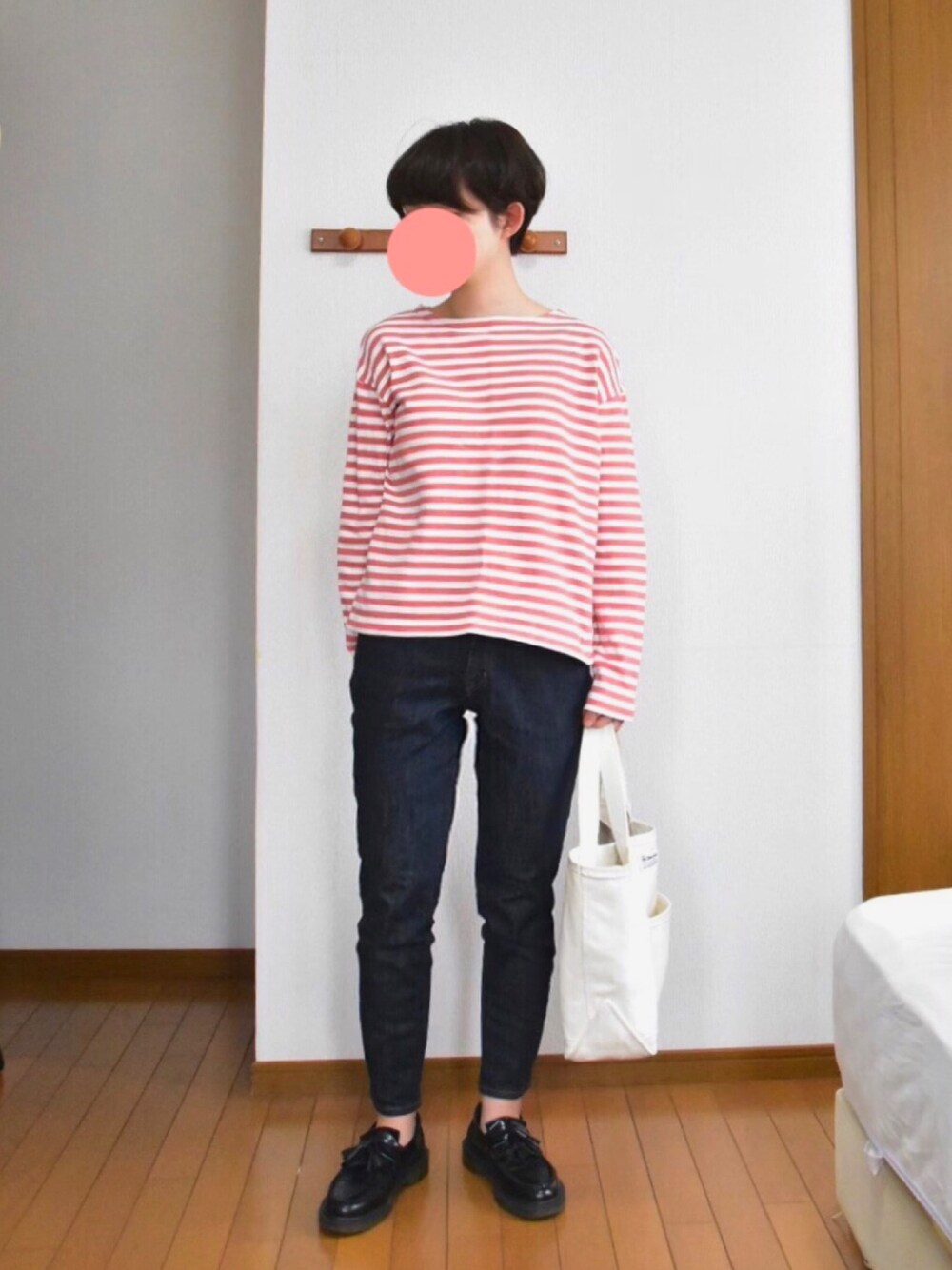 ウォーリーさんスタイル。 ボーダー大好きです。今年はセントジェームスかオーシバルを狙う! コーエンのこのボーダーさんは色がとってもかわいい♡ イエローとブルーもあって全色買いしそうでした…危ない危ない。(笑) 春がやってきているので足首出しめで👣