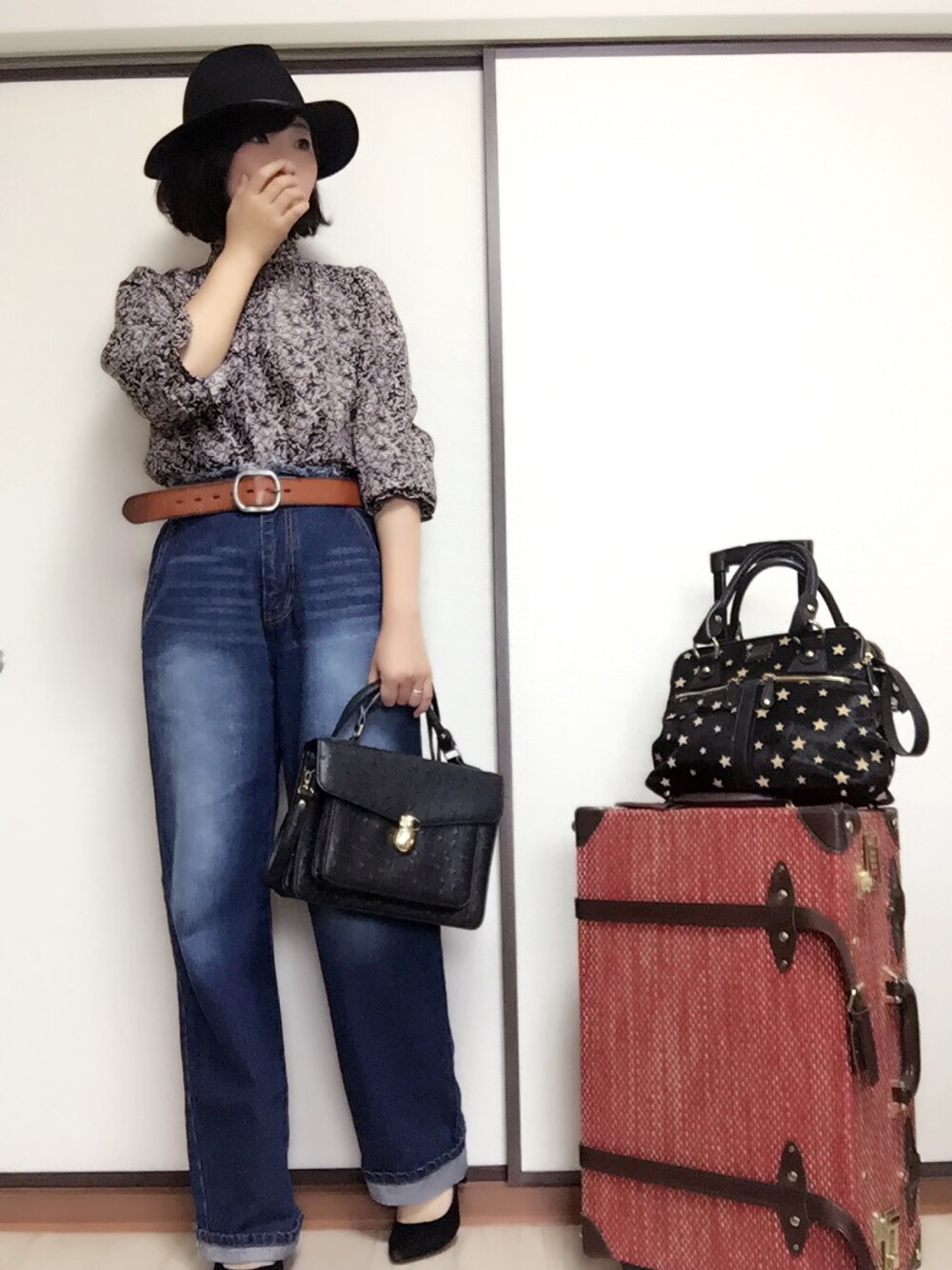 彩のハット「ツバ広中折れハット2 」を使ったコーディネート