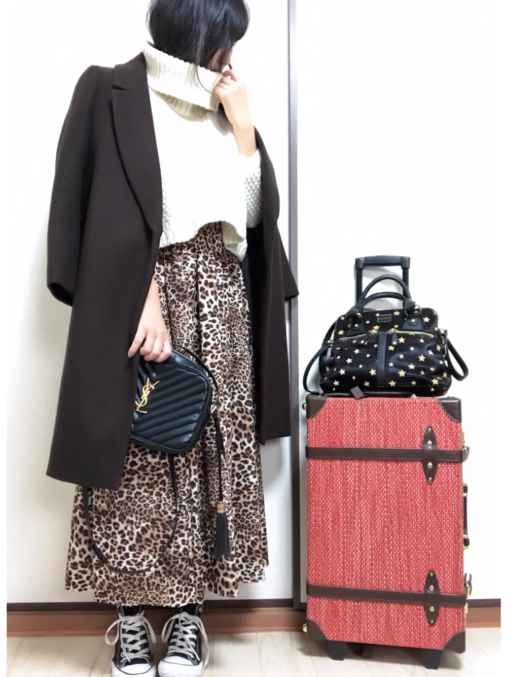 こんばんは☺︎ 12月も折り返しましたね! 年末までのカウントダウンが始まりました… あぁはやーーいっ! レオパード柄スカートは主張が激しいのでブラウンカラーのコートでマイルドに。 モノトーン合わせよりも今の気分にしっくり^_^